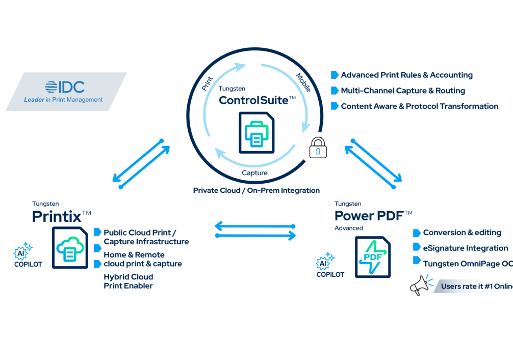 As print environments become increasingly complex, IT teams and employees face challenges with disconnected and inefficient print and capture solutions. Tungsten Automation’s Hybrid Cloud Solution addresses these challenges by providing a unified approach that meets specialized requirements, supports remote workforces, and tackles compliance issues. By integrating Printix, ControlSuite, and Power PDF, this solution offers cost efficiency, accessibility, and enterprise-grade features to simplify management across both cloud and on-premise infrastructures.